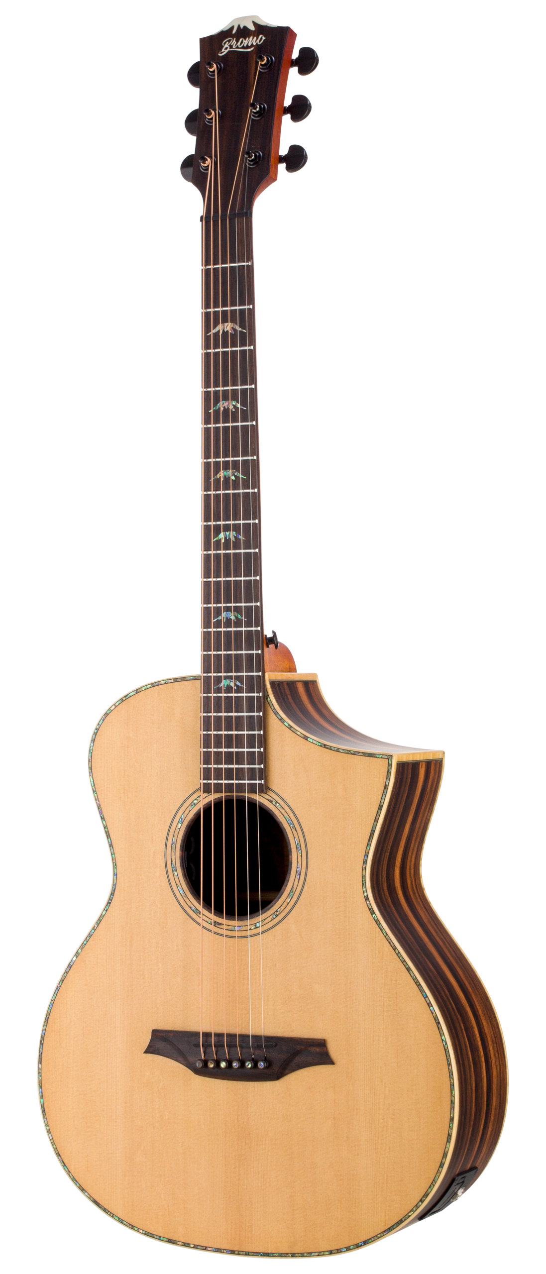 - Mt. Bromo abalone fingerboard inlays.