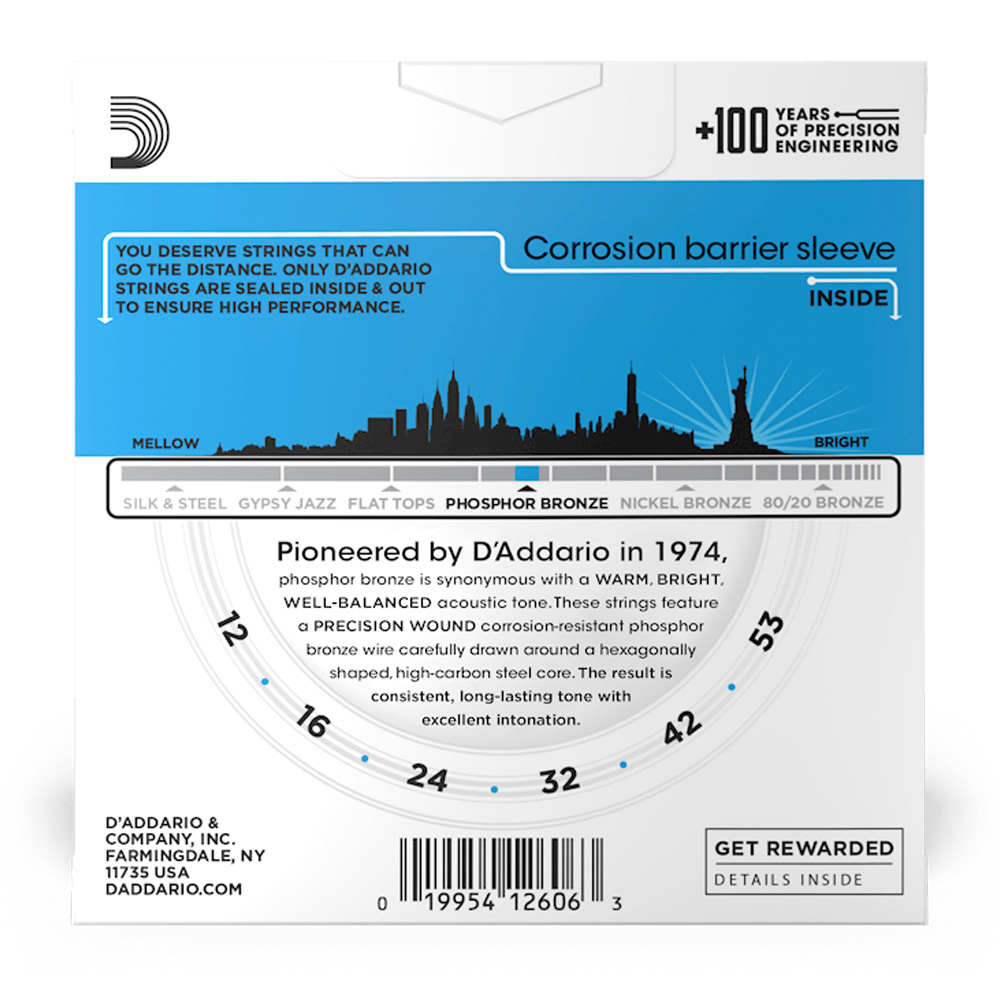 D’Addario was the first to use Phosphor Bronze in acoustic guitar strings back in 1974. Today, Phosphor Bronze is played throughout the world and considered to be the standard in acoustic strings, thanks to its beautiful sonic balance and tonal warmth.