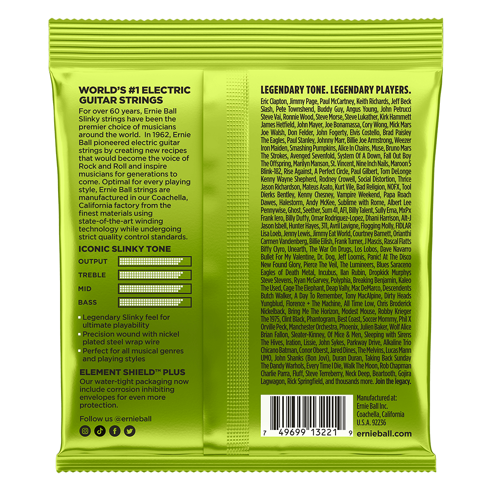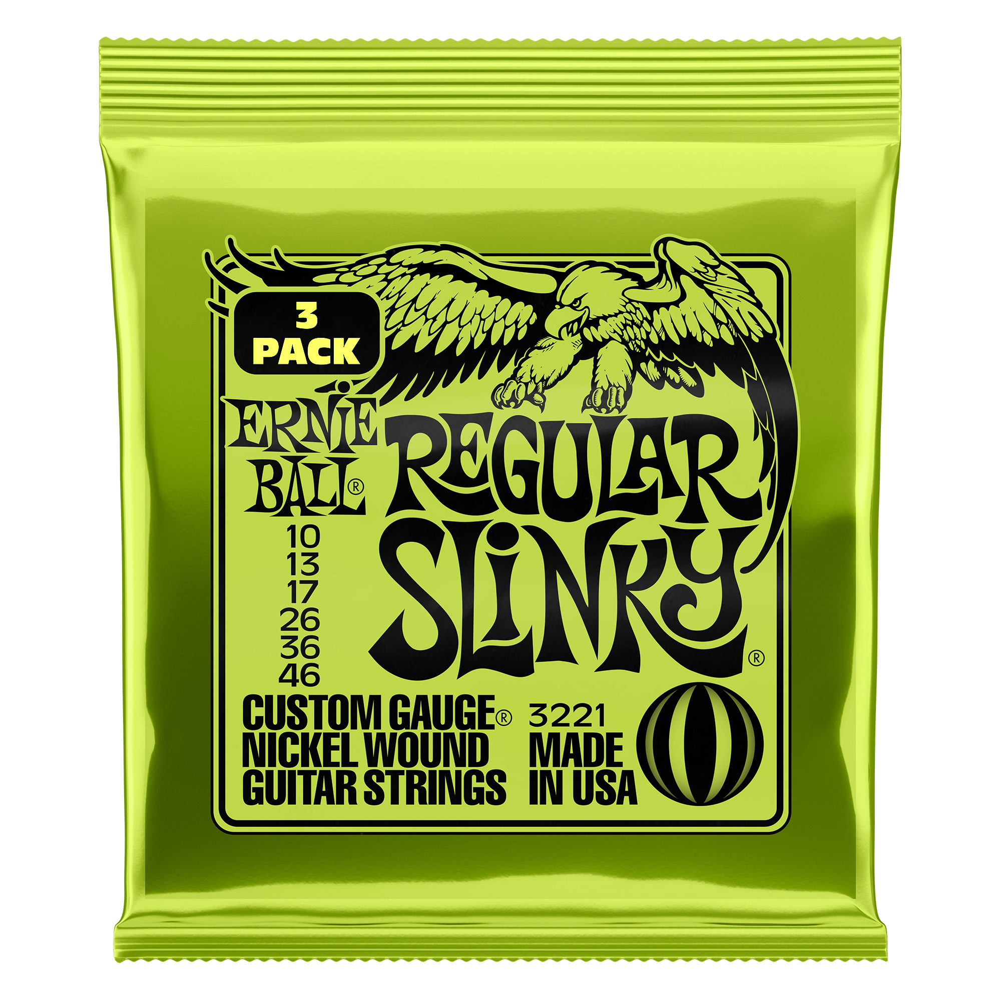 Now available in convenient three-set packs Ernie Ball Regular Slinky Electric Strings are our top selling set, and are favoured by many musicians around the globe.