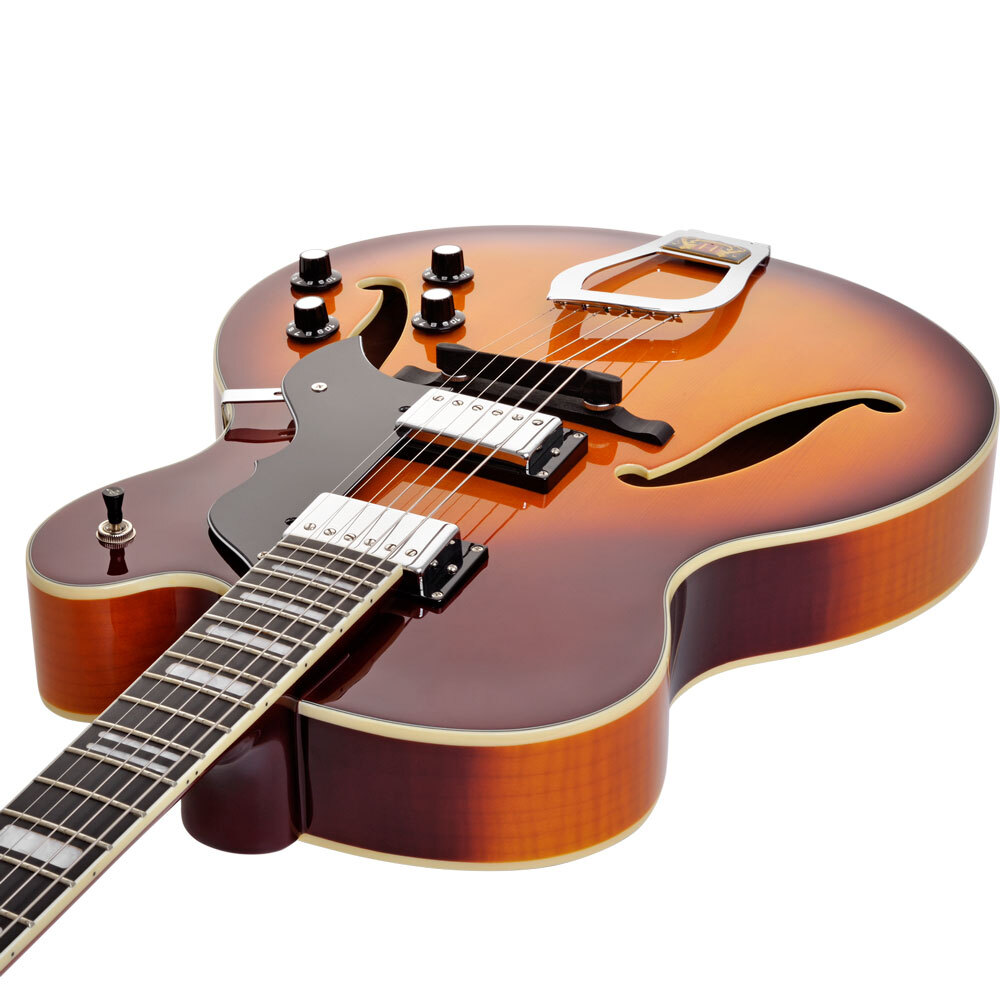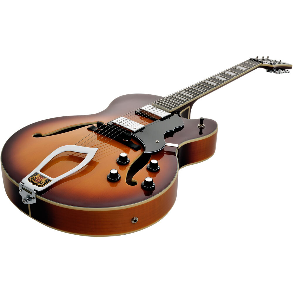 From its hand-carved solid spruce top and neck-body joint at the 16th fret, to its 25-inch (635mm) scale length, Jimmy’s masterful touch is woven into the soul Hagstrom’s HJ800. Hagstrom’s potent Custom 58 Allnico humbucking pickups produce a rich, full-bodied jazz tone with formidable attack. It’s up to you to take it on a rock detour into an uncharted sound universe.