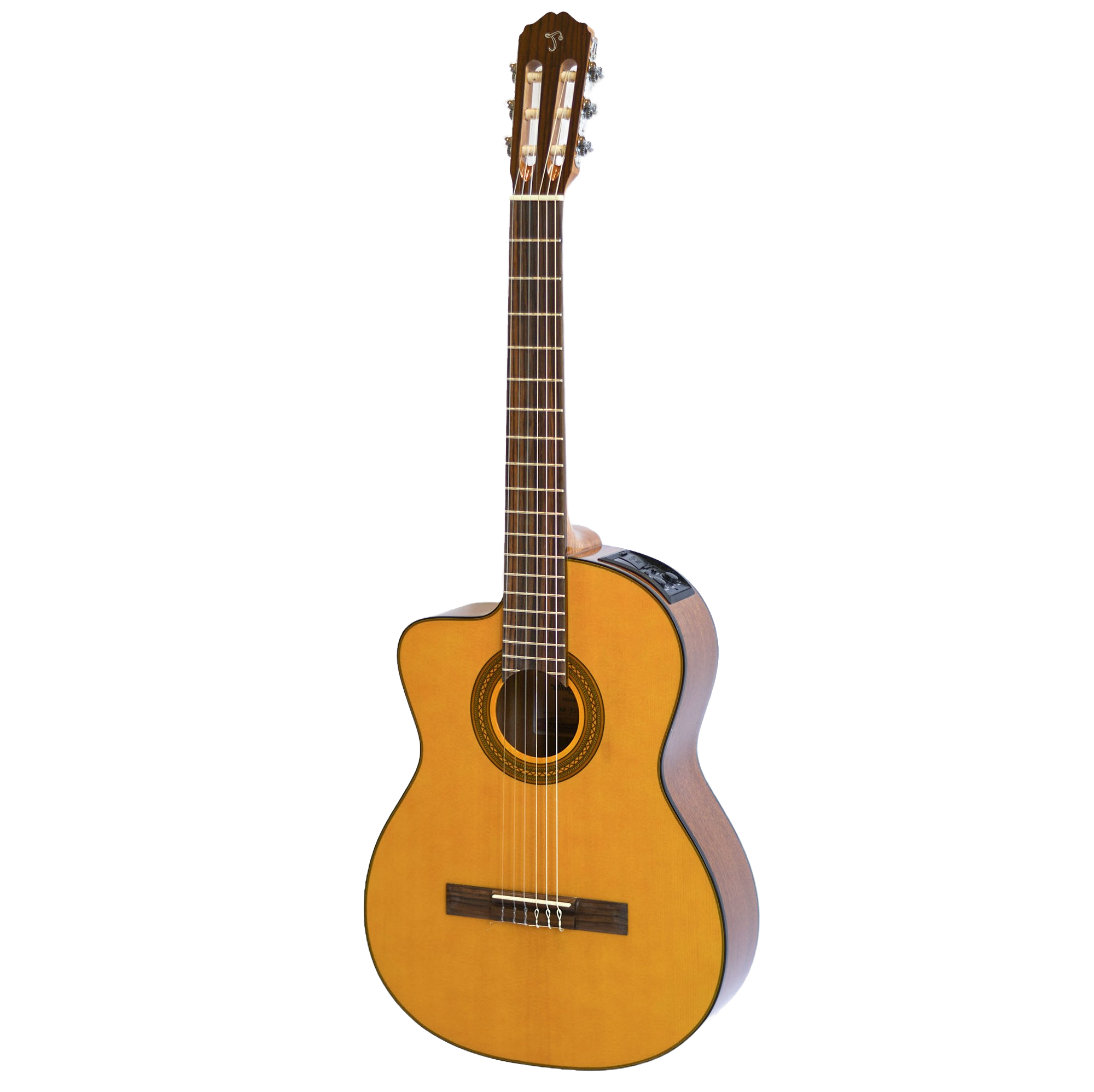 An excellent choice for any player seeking an affordable acoustic/electric classical guitar that performs well above its price tag, the TGC1CE features a fan braced select spruce top and mahogany back and sides for a full and balanced sound. The comfortable mahogany neck laurel fingerboard provide great feel and playability, while the onboard Takamine TP-4T preamp system gives you a built-in tuner with volume and tone controls and a mid-cut switch for excellent amplified performance.
